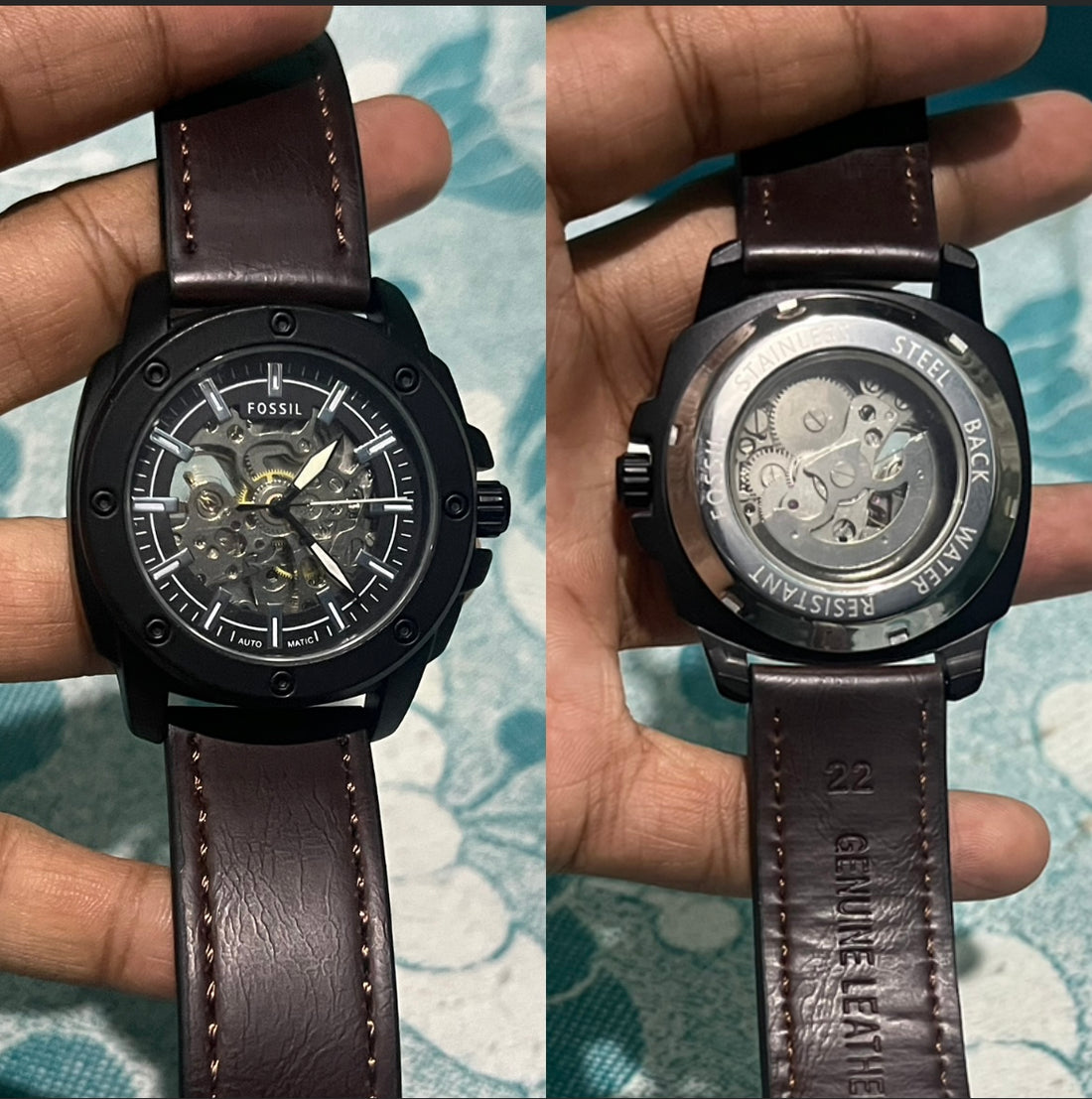 Brand: Fossil Water Resistant Self-winding (Automatic) Premium Leather Strap Transparent Back & Front Skeleton Design...