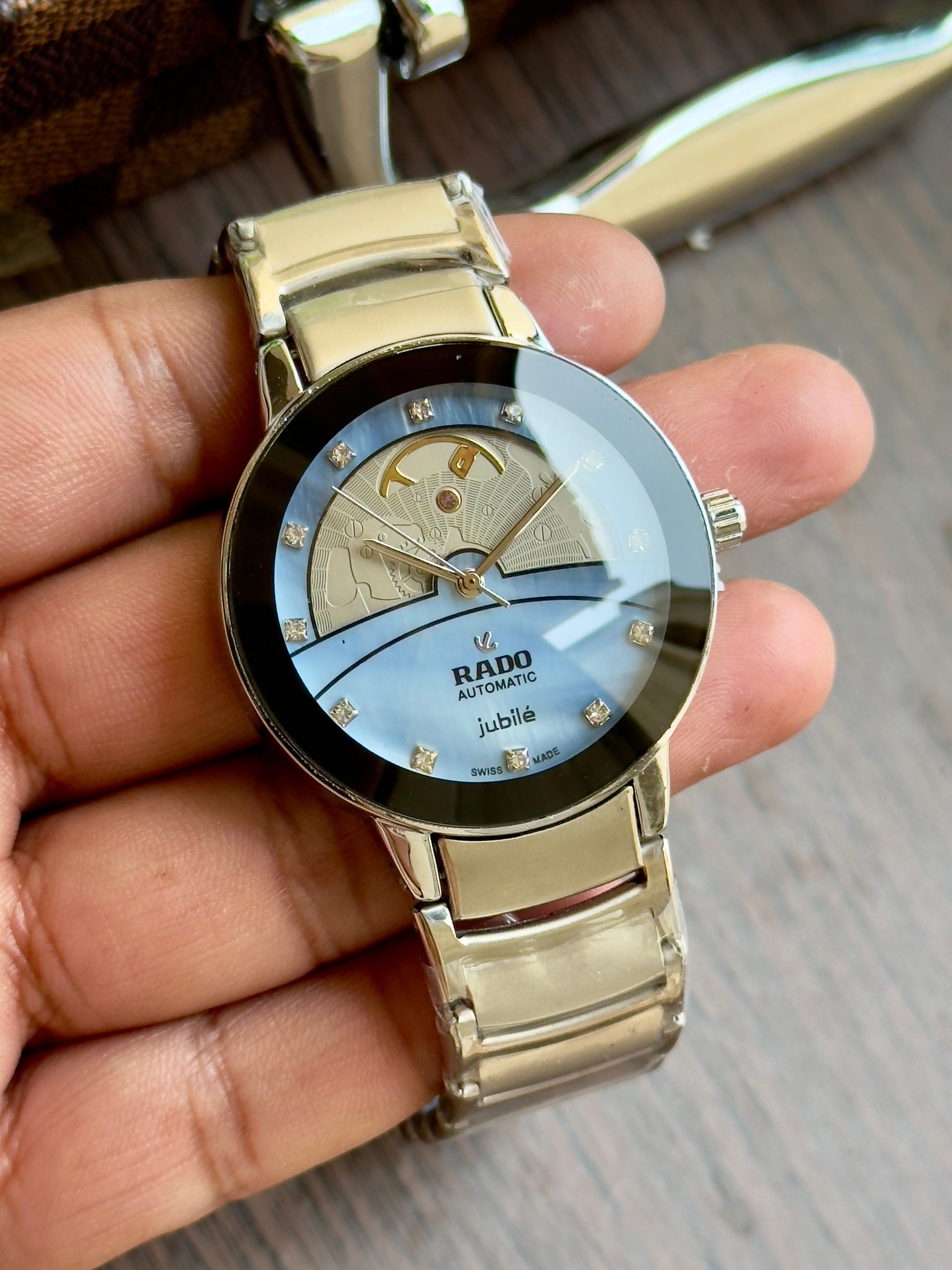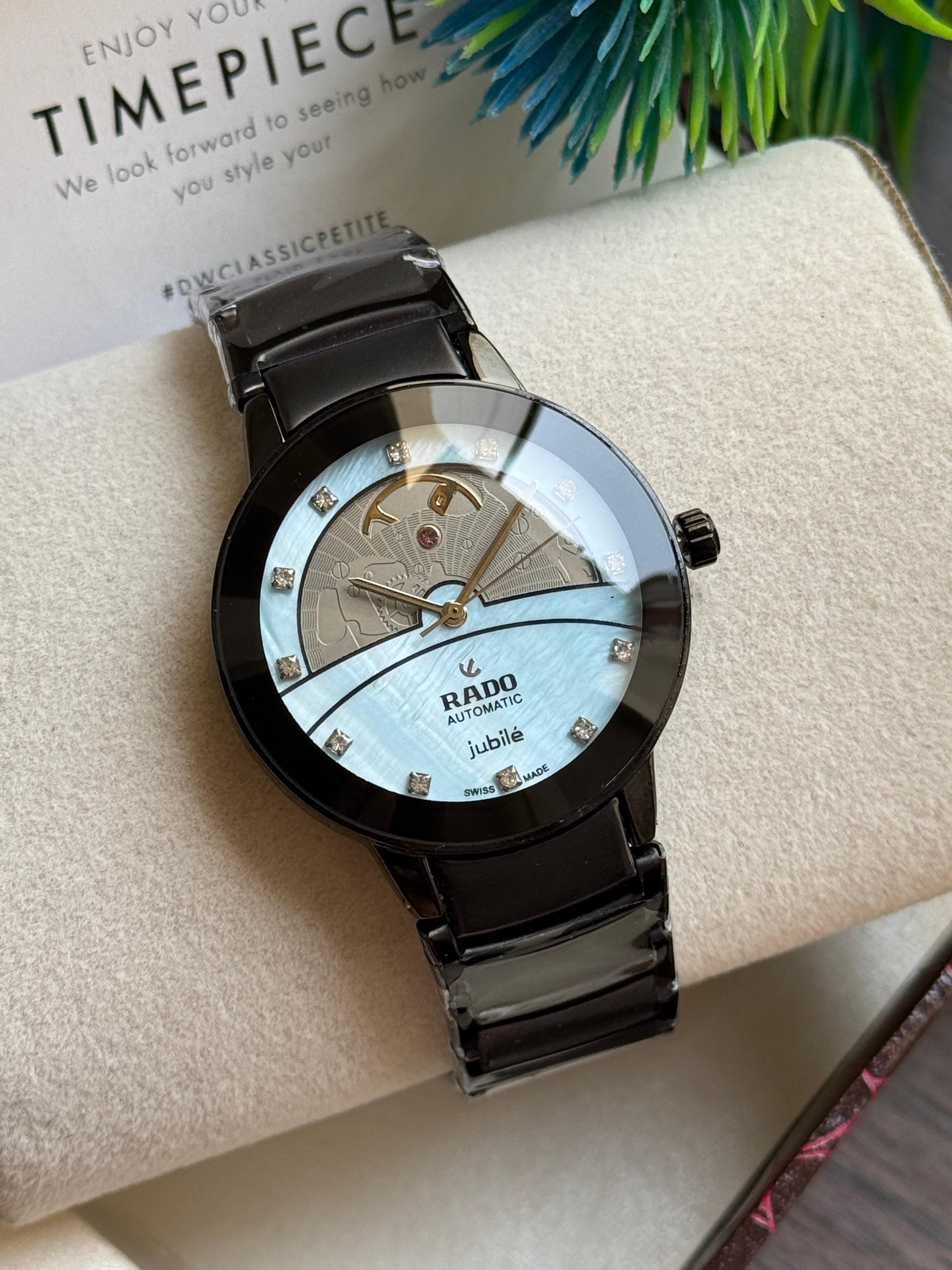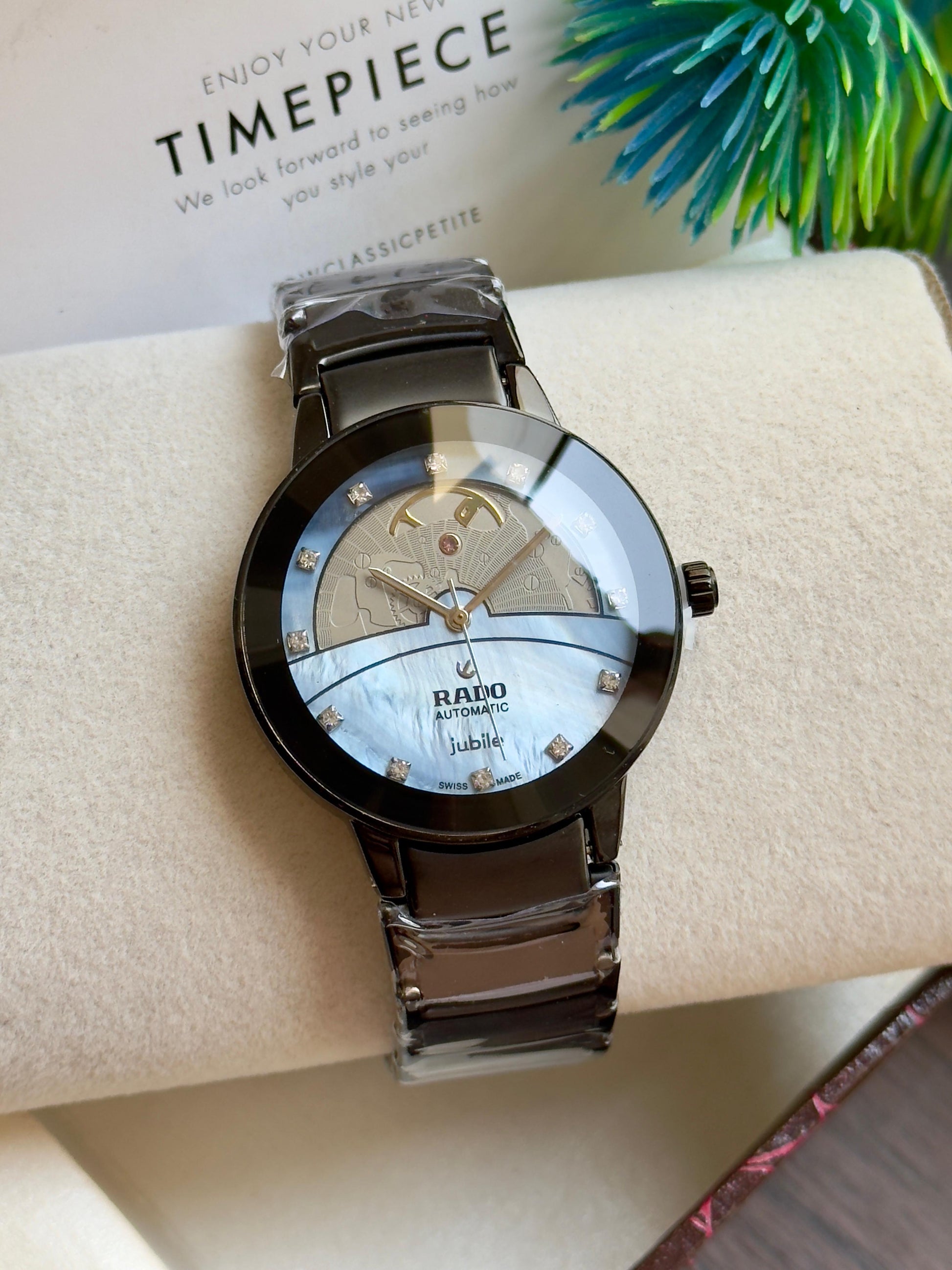 _This Dior watch is a stunning blend of elegance and luxury, with its rose gold tones and sparkling crystal accents._