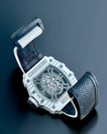 - Movement is suspended in the case by Carbon Fiber Light Weight with 10 pulleys and four tensioners, bridges are made from grade 5 Carbon